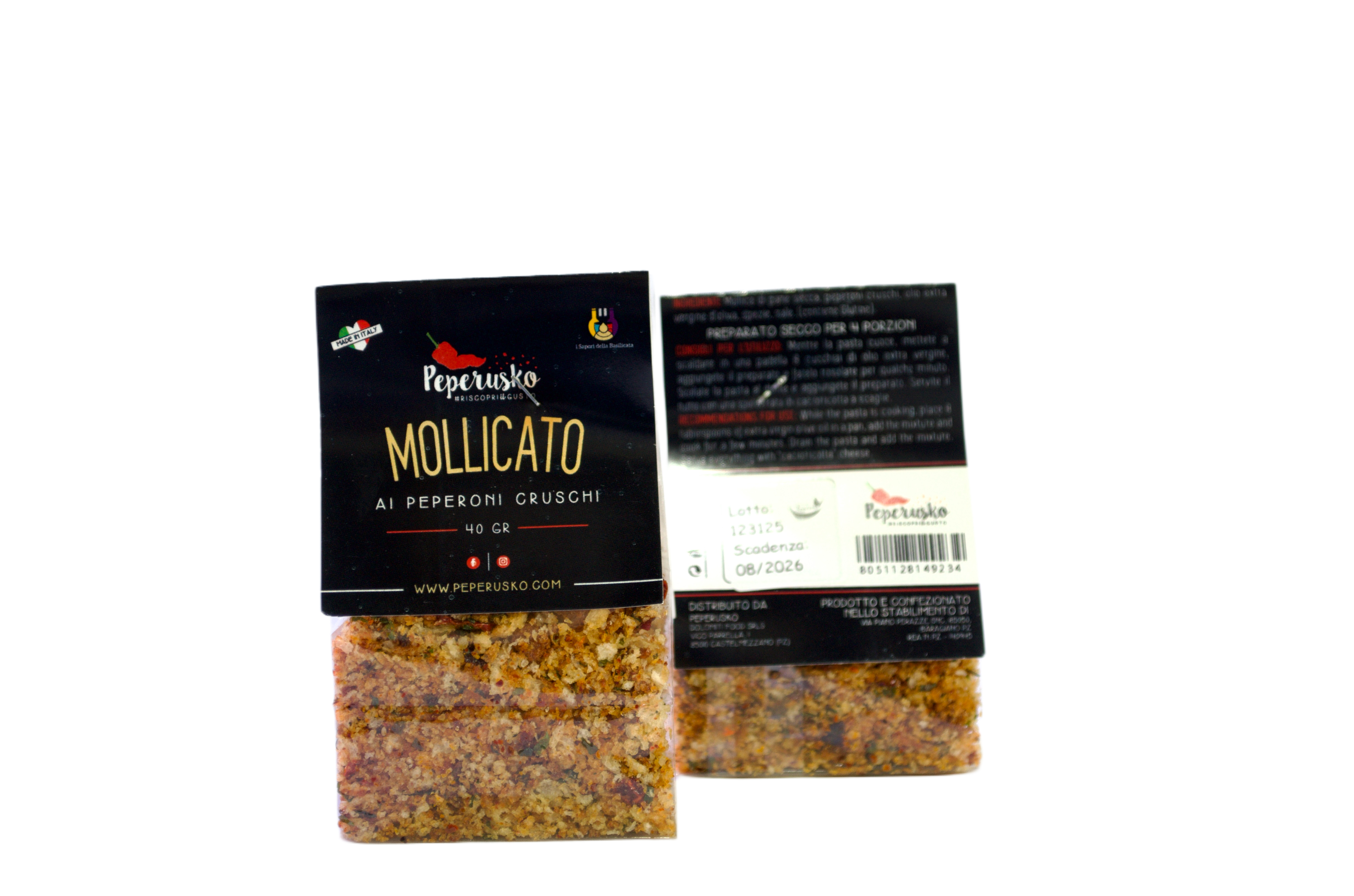 Mollica di pane secca, Peperoni cruschi, Olio extravergine di oliva, Spezie e sale.