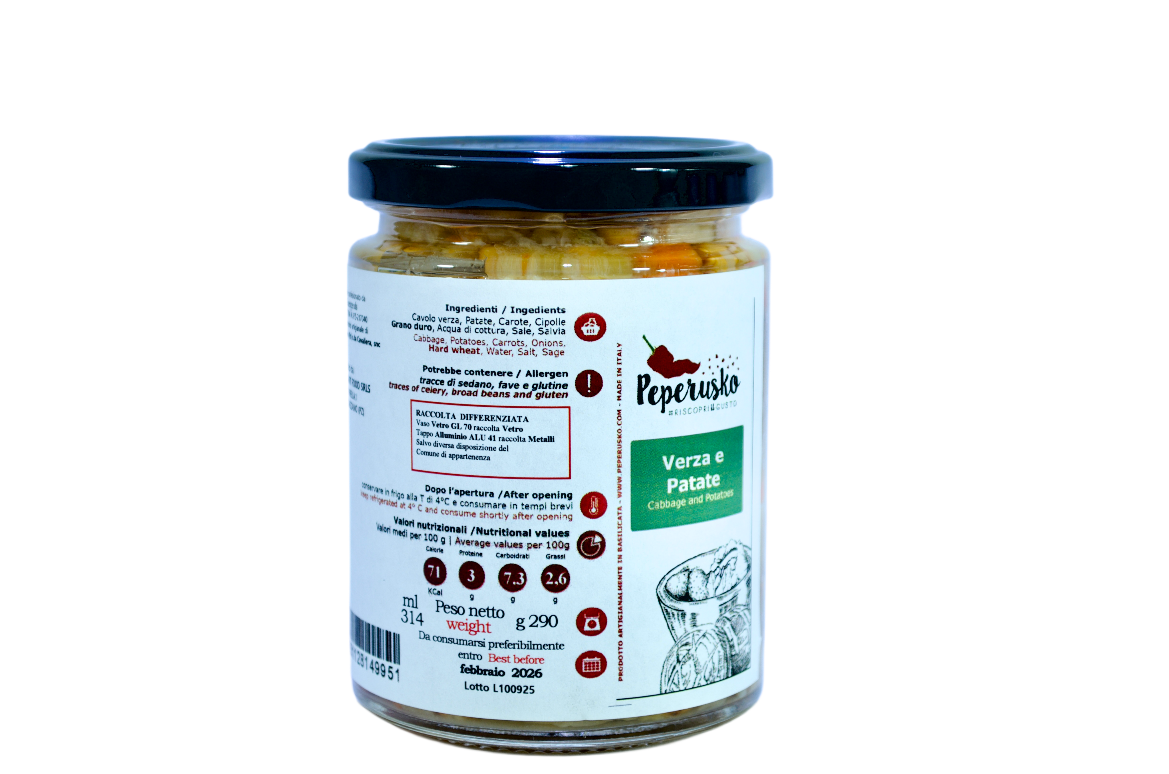 Cavolo verza, Patate, Carote, Cipolle, Grano duro, Acqua di cottura, Sale, Salvia